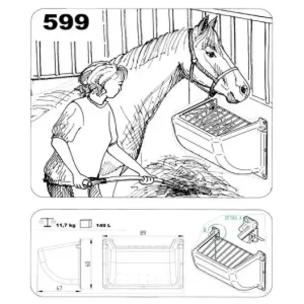 Deze slow feeder is ontworpen om jouw paard te voorzien van hooi op een natuurlijke manier, zonder verspilling. Met een inhoud van 130-140 liter (ongeveer 8 kg hooi) biedt deze voederbak een langdurige oplossing voor het eten van hooi en voorkomt verveling in de stal.
