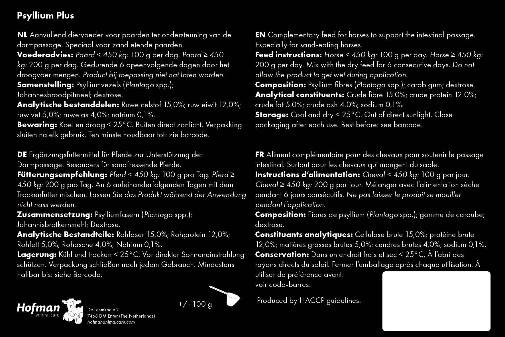 Psyllium is perfect voor optimale verwijdering van zand en ter ondersteuning van de darmwerking.