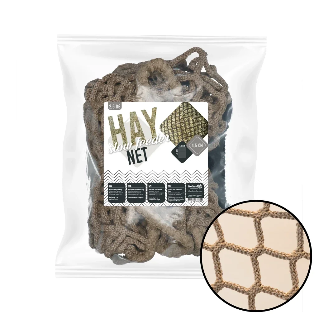 Oersterk fijnmazig hooinet dat zorgt dat het hooi langzaam opgenomen wordt.