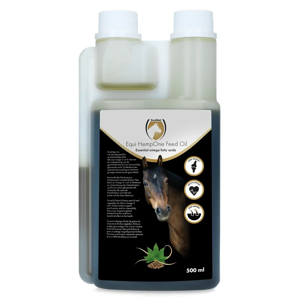 De Equi HempOne Feed Oil is een aanvullend diervoeder speciaal ontwikkeld om de algehele gezondheid van je paard te ondersteunen. Deze krachtige mix van hennepzaadolie en andere plantaardige oliën is rijk aan essentiële omega-3 en -6 vetzuren. Het draagt bij aan een optimale darmwerking, ondersteunt de gewrichtsfunctie, en zorgt voor een prachtige glanzende vacht.