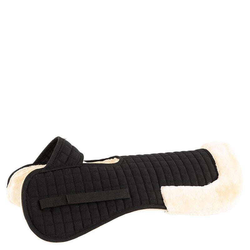 De synthetische schapenvacht is zacht voor de paardenhuid, helpt druk gelijkmatig te verdelen en biedt een schokabsorberend effect. Dankzij de praktische uitsparing wordt druk op de schoft voorkomen, wat het draagcomfort van het zadel aanzienlijk verbetert.