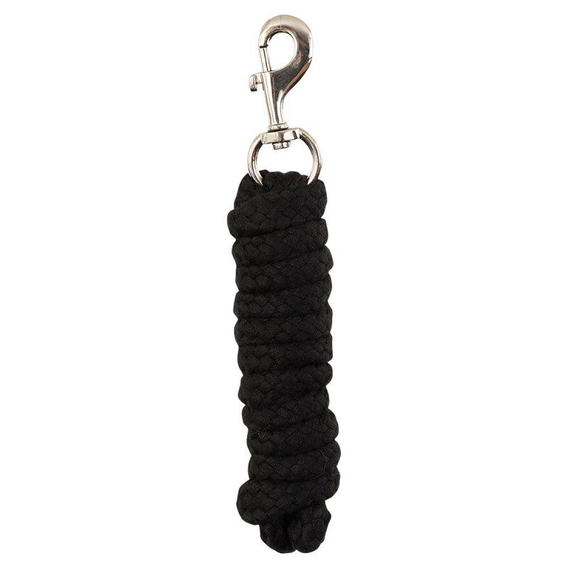 De lijn is uitgerust met een sterke musketonhaak die zorgt voor een veilige en snelle bevestiging aan het halster of de hoofdletter van je paard. Het strakke, éénkleurige ontwerp geeft de lijn een elegante en tijdloze uitstraling die bij verschillende halsters en paardenspullen past.