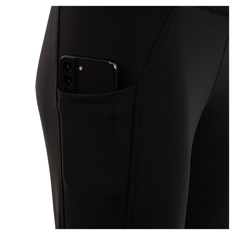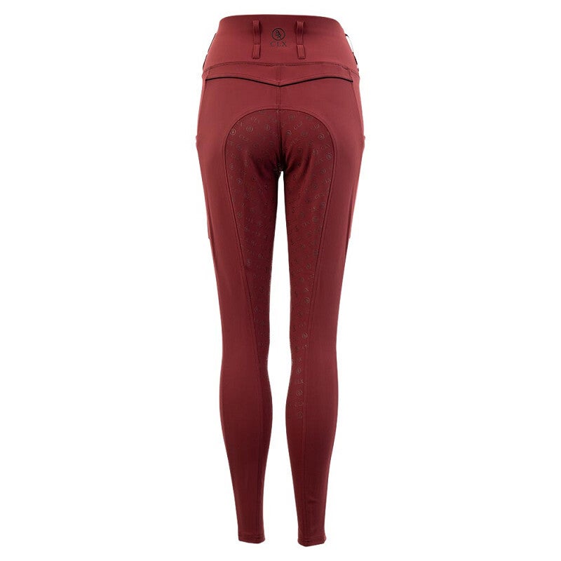 Het siliconen zitvlak, voorzien van een elegant BR/CLX-patroon, zorgt voor extra grip en een stabiele zit. Met diepe zakken aan beide zijden kun je je mobiele telefoon eenvoudig meenemen. De stretch tailleband met riemlussen maakt de rijlegging helemaal af. Verkrijgbaar in stijlvolle kleuren die perfect matchen met de overige items uit de CLX-collectie (zadeldek, peesbeschermers, springschoenen, showdeken, uitrijdeken, oornetje)