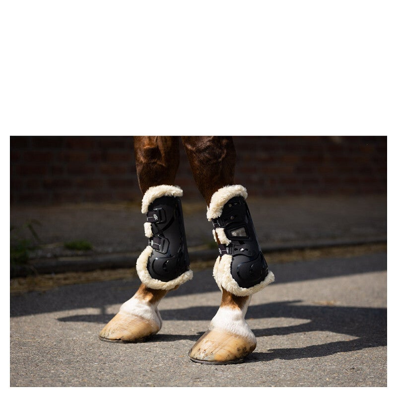 Maak kennis met de BR Peesbeschermers Urban Comfort, ontworpen voor maximale bescherming en comfort voor je paard. De harde buitenschaal van PU vangt klappen op en beschermt het paardenbeen optimaal. De zachte voering van kunstbont zorgt voor een goede drukverdeling, wat drukplekken voorkomt.