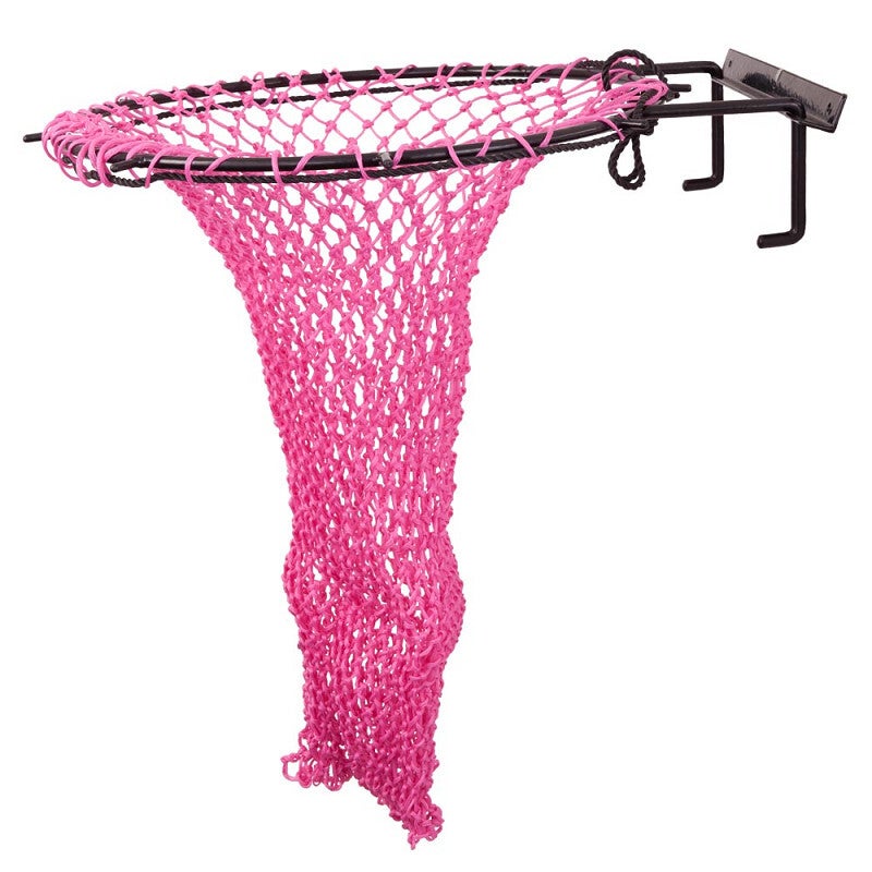Met deze hooinetvuller vul je hooinetten makkelijk en snel, zonder gedoe. Het systeem bestaat uit een ring met een diameter van 51 cm en een ophangsysteem, beide gemaakt van stevig geplastificeerd metaal. Het ophangsysteem is eenvoudig te bevestigen aan vrijwel iedere wand, zoals een muur of staldeur (exclusief bevestigingsmateriaal).
