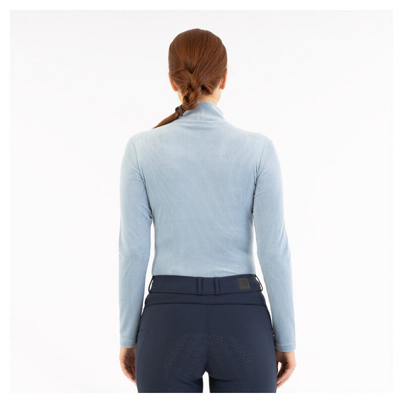 De BR Jeanine pullover is een elegante, geribbelde velvet trui die stijl en comfort combineert. Dankzij de getailleerde, nauwsluitende pasvorm sluit de trui mooi aan en benadrukt deze de vrouwelijke lijn. De vochtafvoerende stof zorgt ervoor dat je droog en comfortabel blijft – ideaal tijdens het rijden of gewoon in je vrije tijd.