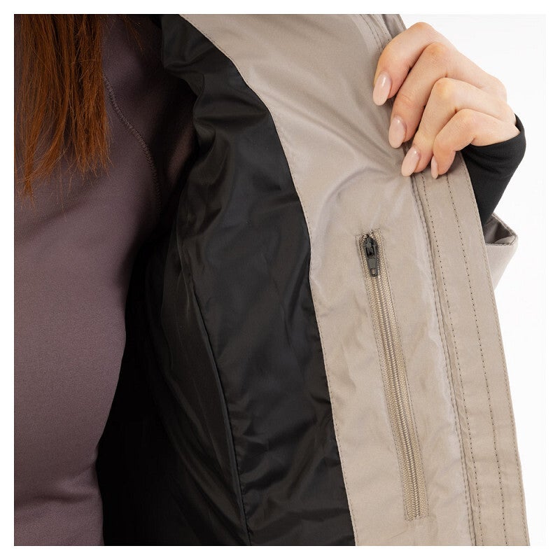 Praktisch in gebruik: de jas heeft een tweewegritssluiting met windvanger en kinbescherming, ritszakken aan de voorkant en een binnenzak met ritssluiting voor veilig opbergen van persoonlijke spullen.