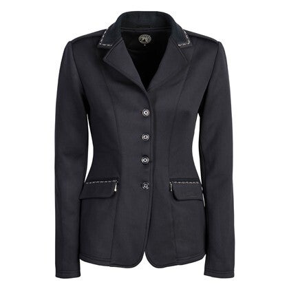 Dit moderne wedstrijdjasje combineert elegantie, comfort en optimale bewegingsvrijheid. Gemaakt van hoogwaardige stretchmaterialen voor een perfecte pasvorm. Het jasje is stijlvol afgewerkt met subtiele kristallen op de kraag en paspelzakjes met blinde ritssluiting, waardoor het zowel chic als praktisch is.