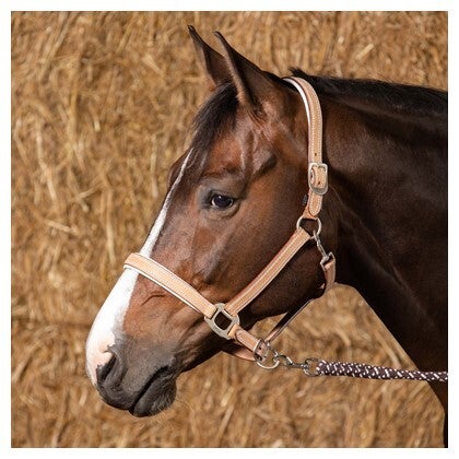 Het halster is geschikt voor dagelijks gebruik in stal, weide of tijdens transport, en combineert duurzaamheid met een elegante uitstraling. Verkrijgbaar in de maten Cob en Full, zodat er altijd een passend halster voor jouw paard beschikbaar is.