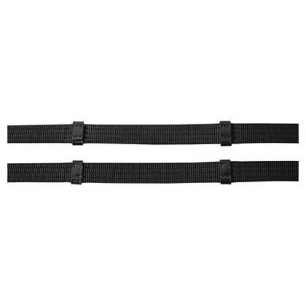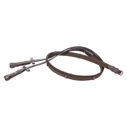 Deze webband teugels zijn voorzien van lederen stops, waardoor je altijd extra grip en controle hebt tijdens het rijden. De teugels zijn afgewerkt met nikkel gespen en blinde sluitingen voor een nette, klassieke uitstraling en een comfortabele verbinding met het bit.