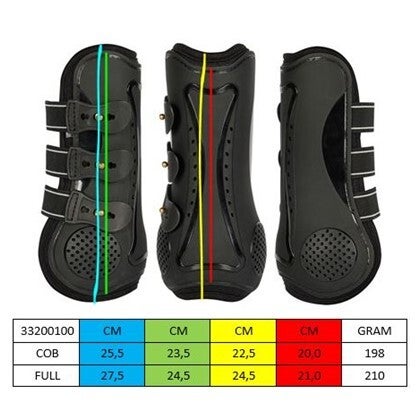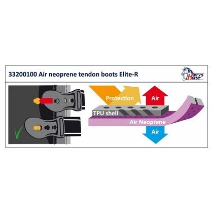 De binnenzijde is afgewerkt met air neoprene, wat zorgt voor extra ventilatie in combinatie met de ventilatie-openingen in de buitenzijde, zodat het paardenbeen koel en comfortabel blijft. De ventilatie-openingen op de kogel zijn geplaatst onder een hoek van 45 graden, waardoor de kans op verstopping minimaal is en de luchtstroom optimaal blijft.