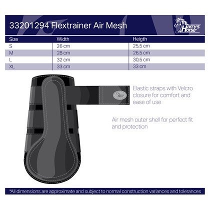 Dankzij de optimale pasvorm behoudt het paard veel bewegingsvrijheid, waardoor deze beschermers een ideale vervanging van traditionele bandages vormen. De Flextrainer Air beschermers zijn eenvoudig te reinigen en machinewasbaar op 30 °C.