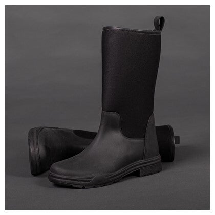 De Neopreen laars is een waterdichte outdoorlaars die comfort en functionaliteit combineert voor ruiters en buitenliefhebbers. Het onderdeel van de voet is van leer, wat zorgt voor stevigheid en duurzaamheid, terwijl de schacht van neopreen flexibel en waterbestendig is, waardoor je voeten droog blijven in natte omstandigheden.