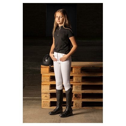 e Rijlaars Bellagio Junior is een comfortabele en stijlvolle synthetische leren rijlaars, ideaal voor jonge ruiters. De ritssluiting aan de achterzijde zorgt voor gemakkelijk aan- en uittrekken en is zowel boven als onder afgewerkt met een flapje met drukknoopsluiting voor extra bescherming.