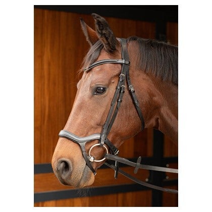 Het hoofdstel is afgewerkt met blinde sluitingen aan de bakstukken en teugels voor een strakke en rustige uitstraling. Het wordt geleverd inclusief webband teugels en is verkrijgbaar in de maten cob en full.
