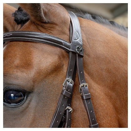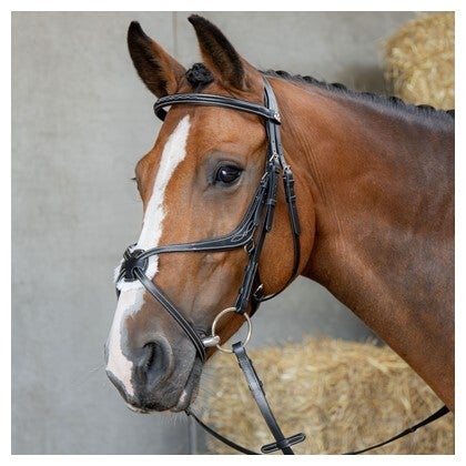 Het hoofdstel wordt geleverd inclusief webband teugels en is verkrijgbaar in de kleuren bruin en zwart, in de maten pony, cob en full. Ideaal voor ruiters die een combinatie van stijl, comfort en anatomisch design zoeken.