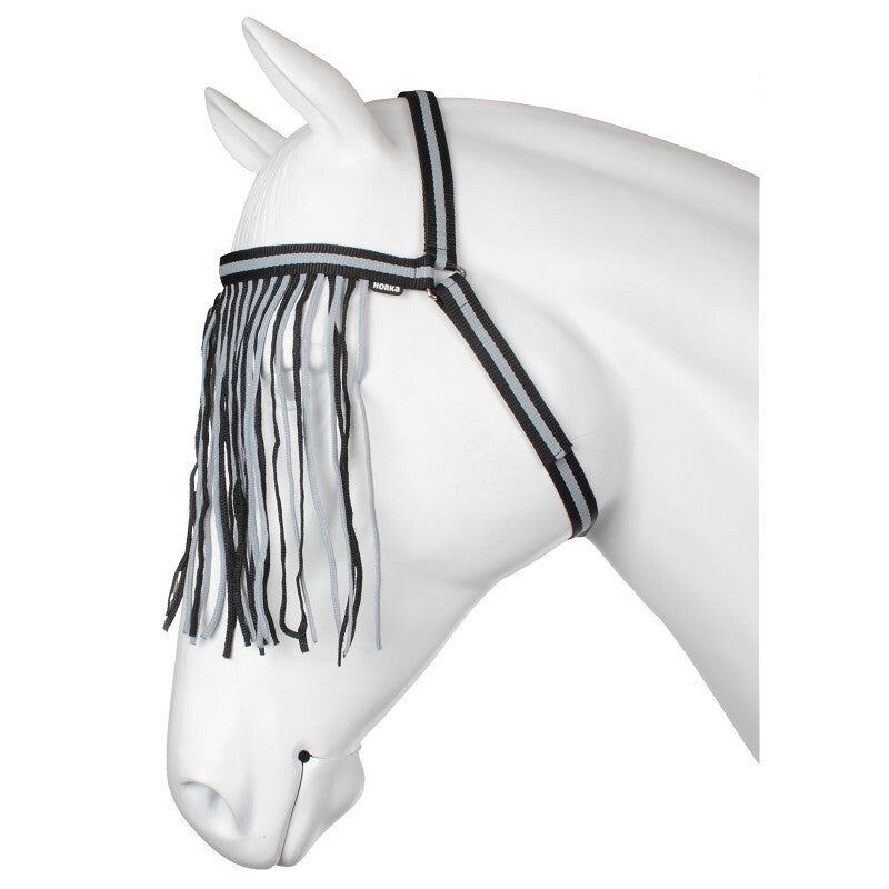 Het Vliegenfrondeel met Keelriem beschermt het gezicht van je paard of pony effectief tegen vliegen en andere insecten, zonder dat er een halster nodig is. Het frondeel is voorzien van een handige keelriem voor een veilige en comfortabele pasvorm.