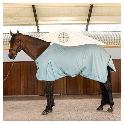 De Zomerdeken Comfort SU26 is een fijne, lichte zomerdeken die ideaal is voor warmere dagen of als extra bescherming in de stal of tijdens transport. Het soepele polyester materiaal zorgt voor een comfortabele pasvorm en voorkomt schuren, zodat je paard vrij kan bewegen.