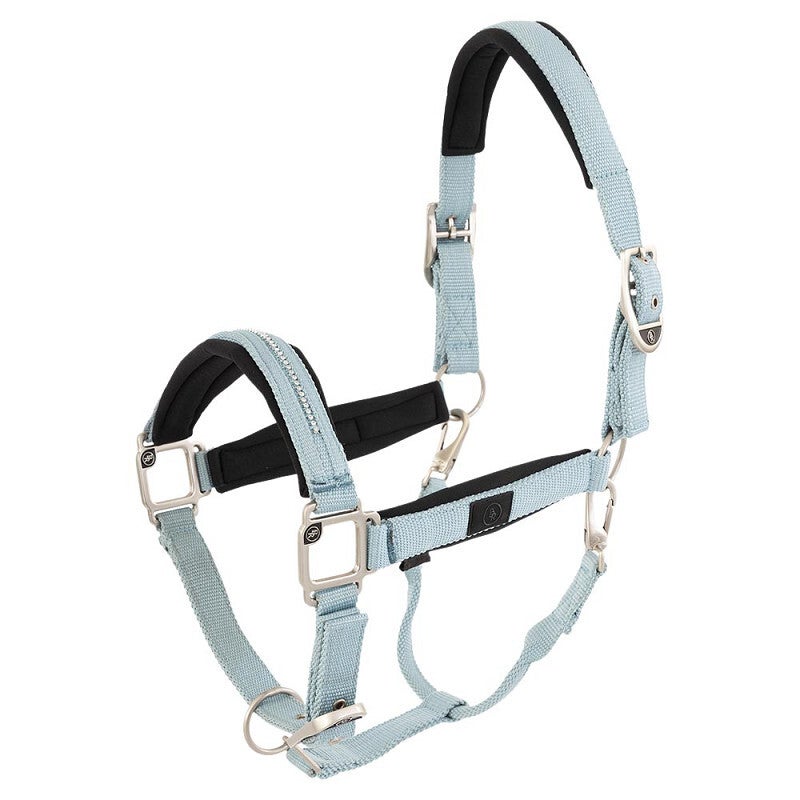 De mat zilveren hardware en het subtiele glitterkoord op de neusriem geven het halster een elegante en moderne look. Het halster is aan beide zijden verstelbaar, waardoor de pasvorm symmetrisch blijft en optimaal kan worden afgestemd op het hoofd van je paard.