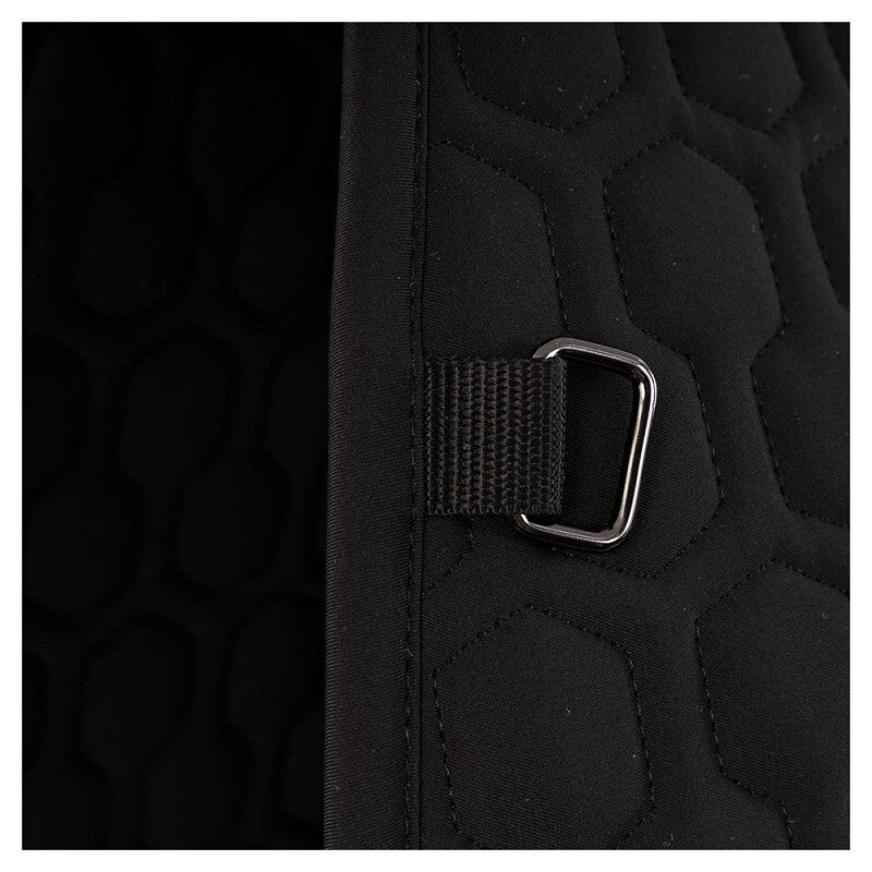 De vochtregulerende voering helpt je paard droog en comfortabel te blijven, ook tijdens intensieve trainingen. De combinatie van 220 g Cool Plus voering, 700 g vilt en 8 mm schuim zorgt voor een goede drukverdeling en schokabsorptie.