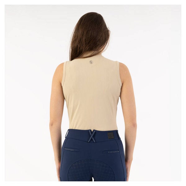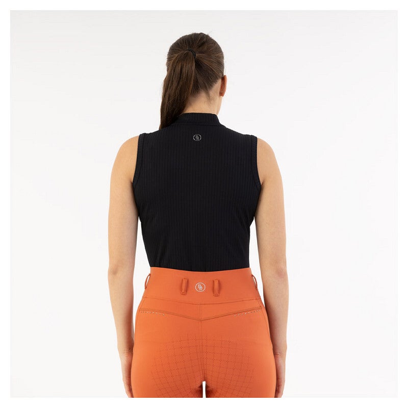 Het BR half zip mouwloos shirt Kirsten dames is een mooie en luchtige top voor warme dagen. De sportieve ribstof in combinatie met de stretchstof zorgt voor een perfecte pasvorm en optimaal draagcomfort tijdens het rijden.