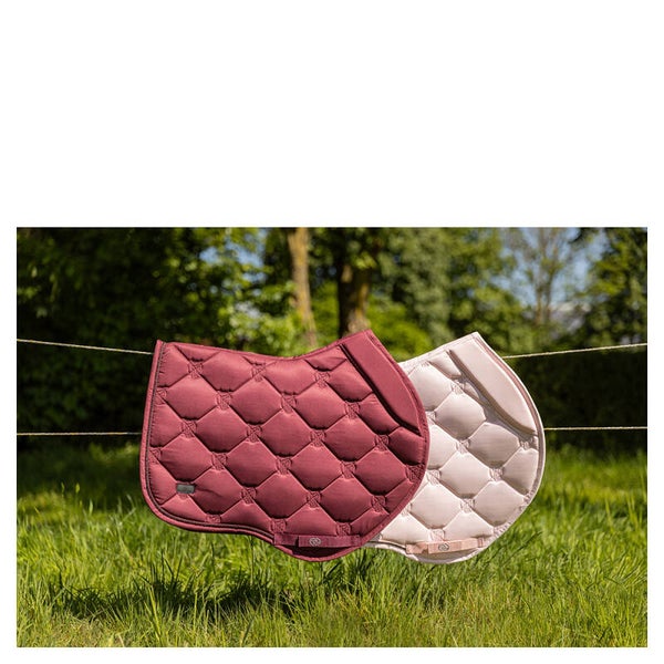 Afgewerkt met een luxe glitterkoord, borduurwerk op de rugnaad en subtiel artwork op de singelstoot, wat het zadeldek een verzorgde en luxe uitstraling geeft. De afneembare klittenbandsluiting met verstelbare lange band maakt het dekje praktisch in gebruik.